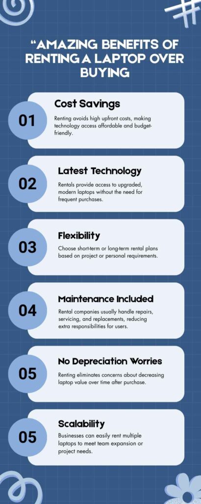 One of the biggest benefits of renting a laptop is cost savings. Buying a high-end laptop can be expensive, especially for students or startups. Rentals allow you to access powerful devices without breaking the bank.